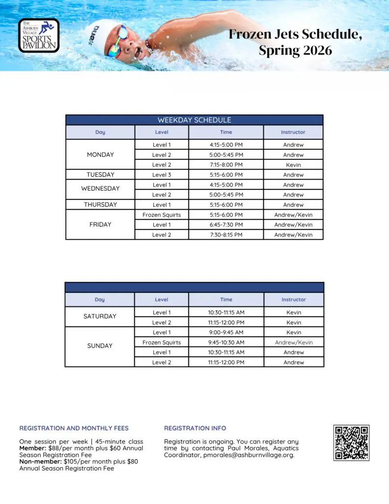 For more information on our Aquatics programs, please submit the form provided or email Andrew Patterson at apatterson@ashburnvillage.org.