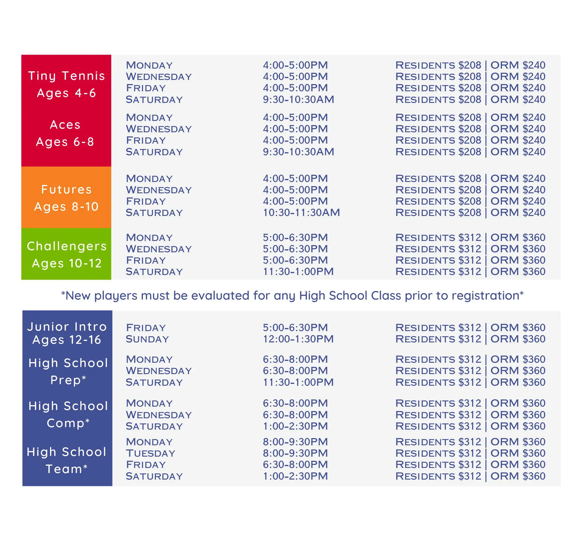 *Tennis Academies are by invitation only.